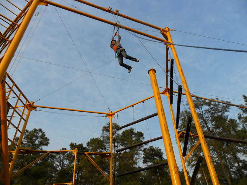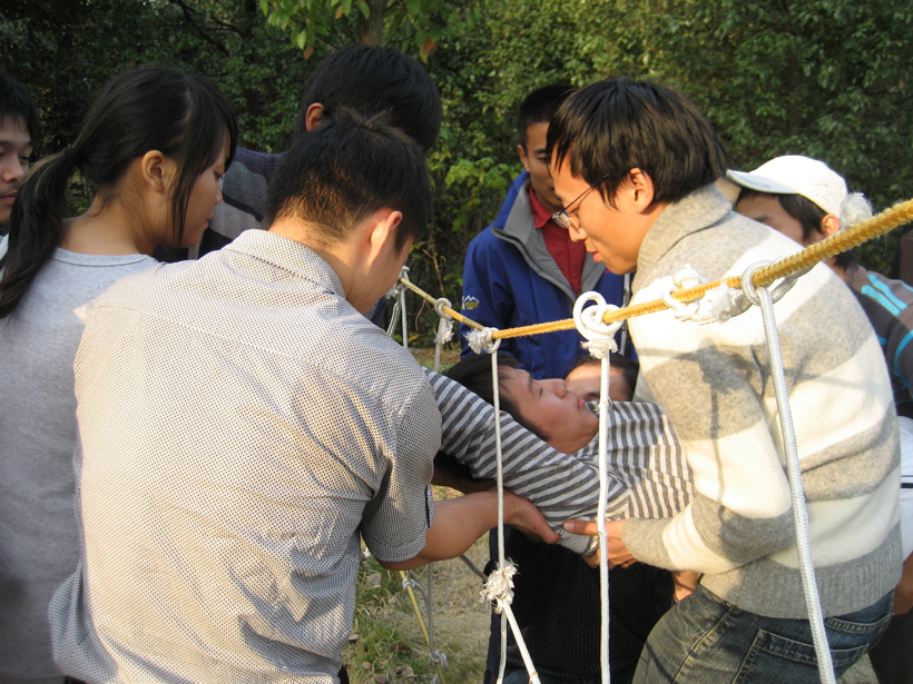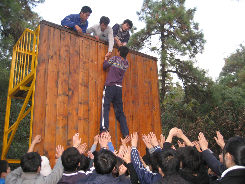 此次拓展訓練活動內(nèi)容豐富,活動內(nèi)容是以增強青年骨干員工團隊合作精神為主題,激發(fā)青年骨干員工自身潛能和創(chuàng)新創(chuàng)造力為目的而安排的。為了使活動收到實效,讓每個參加活動的青年骨干都能在活動中充分體驗和感受活動內(nèi)容凸顯出來的團隊精神,在活動開始時,就將50名員工分成4個隊,在每個隊的隊長帶領下,每個隊都根據(jù)自己的愿望,確定了自己的隊名、活動口號和隊歌。在活動中4個隊按照項目要求,互相鼓勵,互相幫助,依靠團隊的力量和團隊中每個隊員的智慧,克服了拓展訓練項目安排的各種困難,完成了項目安排的只有團隊力量才能完成的項目。在活動中,4個隊都按照各自確定的不讓一個隊員掉隊的目標,齊心協(xié)力,團結協(xié)助,全部順利完成了“天梯、空中單杠、極速60秒、穿越電網(wǎng)、逃生墻”等5個項目的素質拓展訓練。