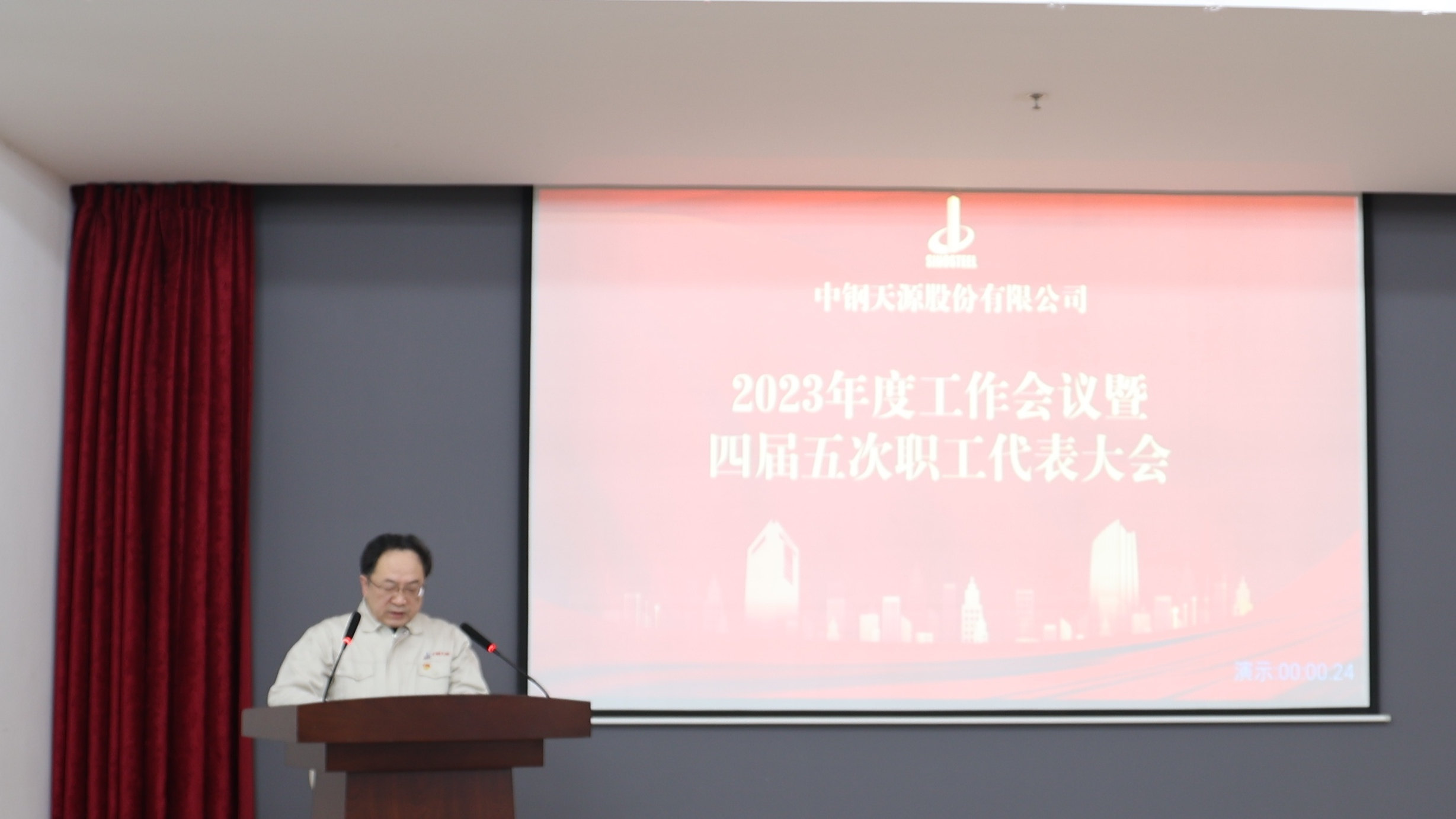 公司黨委副書記、總經(jīng)理吳剛作中鋼天源四屆五次職代會工作報告